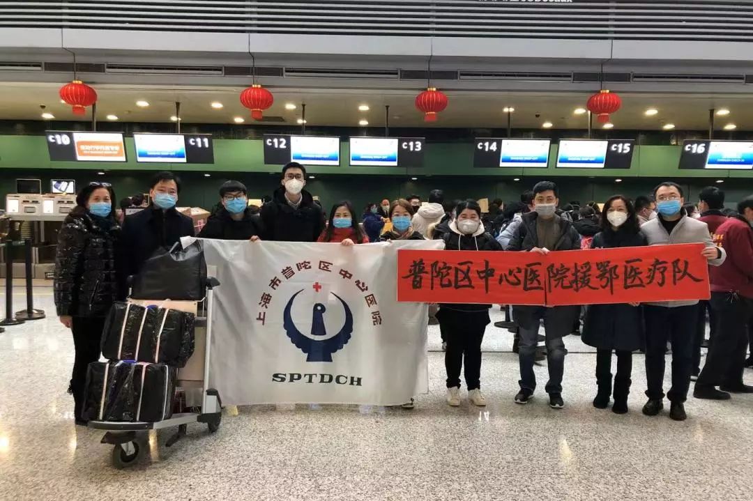 附属普陀医院第二批驰援武汉医疗队出征,队员为呼吸科主任王雄彪、感染科副主任严萍、检验科技师仇超勤、重症监护室护士范磊磊、张琴琳,以及呼吸科护士龚玥蕊。