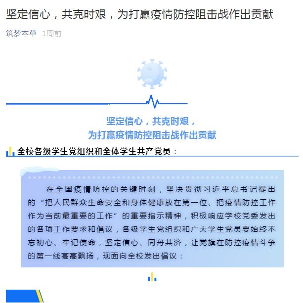疫情当前,天游ty8线路检测中心登录充分发挥医学学科和附属医院优势,积极主动参与新型冠状病毒感染肺炎疫情防控工作。校学(研)工部认真贯彻落实习近平总书记关于疫情防控工作重要指示精神,在学校疫情防控工作领导小组的领导下,全力做好全校学生的思想政治教育和价值引领工作,保障学生生命安全和身体健康,发动全校辅导员共同战“疫”。