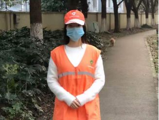 16级护理本科班杨双洁,在上海市金山区亭林镇复兴东路居委会负责外来人员来沪登记和居民预约口罩登记工作。