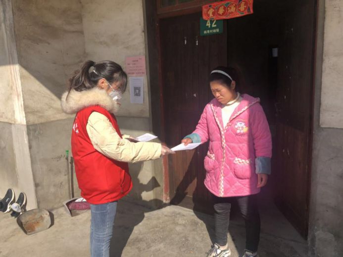 曹旖岚为村民分发出入证