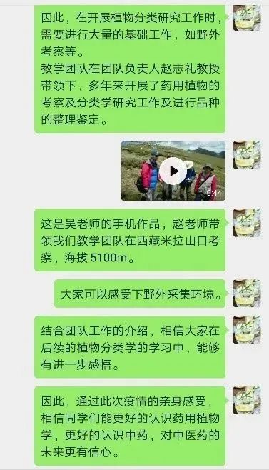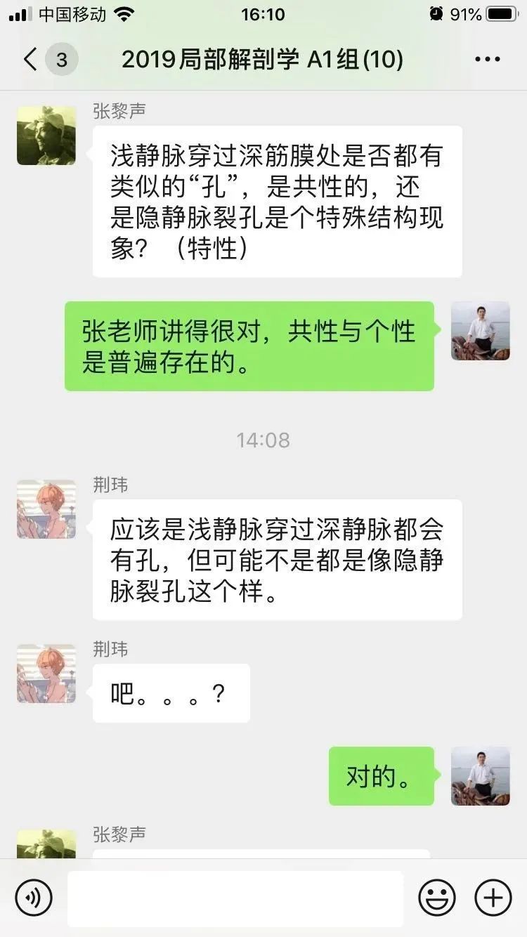 因为有了前期的测试和老师与同学们的充分沟通,我们的线上课程很顺利地开班了,在中医外科学的课堂上,我们连线了雷神的老师们,老师们告诉我们中医敷贴、音乐疗法、耳穴等在抗击疫情的前线被积极运用,获得了患者们的肯定,除此之外,一线医务人员长时间穿防护服,佩戴口罩,皮肤问题也不能忽视,而中医外科学在此发挥了重要的作用。我们深受老师们的鼓舞,他们的话增强了我们的学科自信心,使我们明白在抗击疫情上,唯有一腔热血是不够的,还需要脚踏实地,努力学习。就像老师们说的:“作为医学生在家可以做的最有用的抗击疫情的方式就是努力学习,学习永远都是最主要的。”