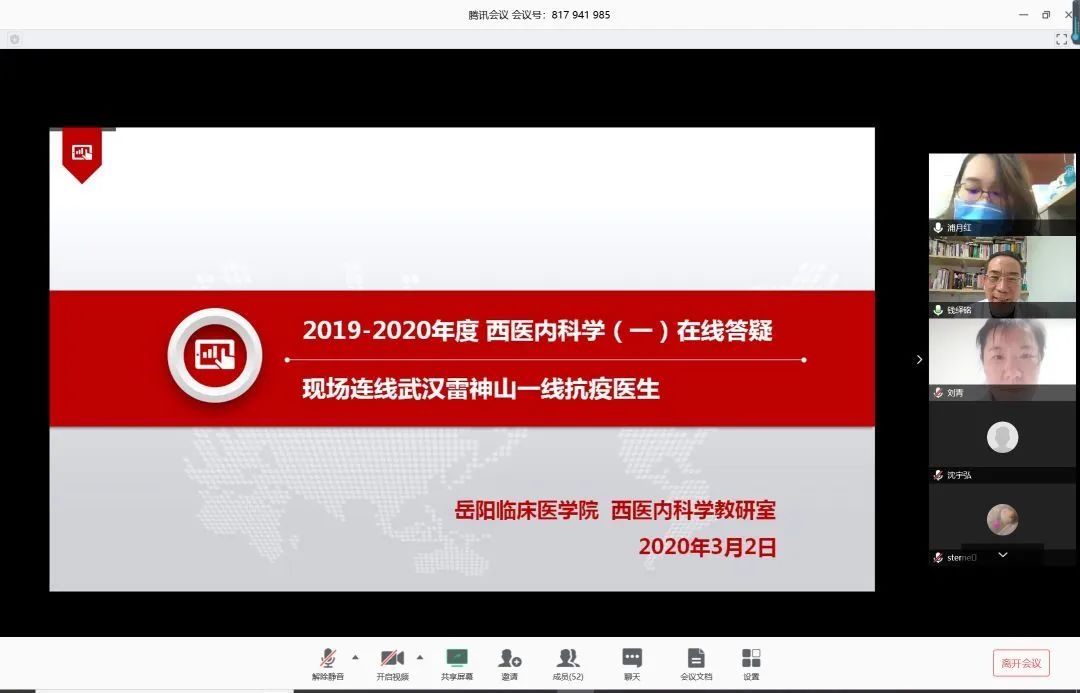 开课第一天,岳阳临床医学院《中医外科学》连线了在雷神山参与救援战“疫”的老师们。