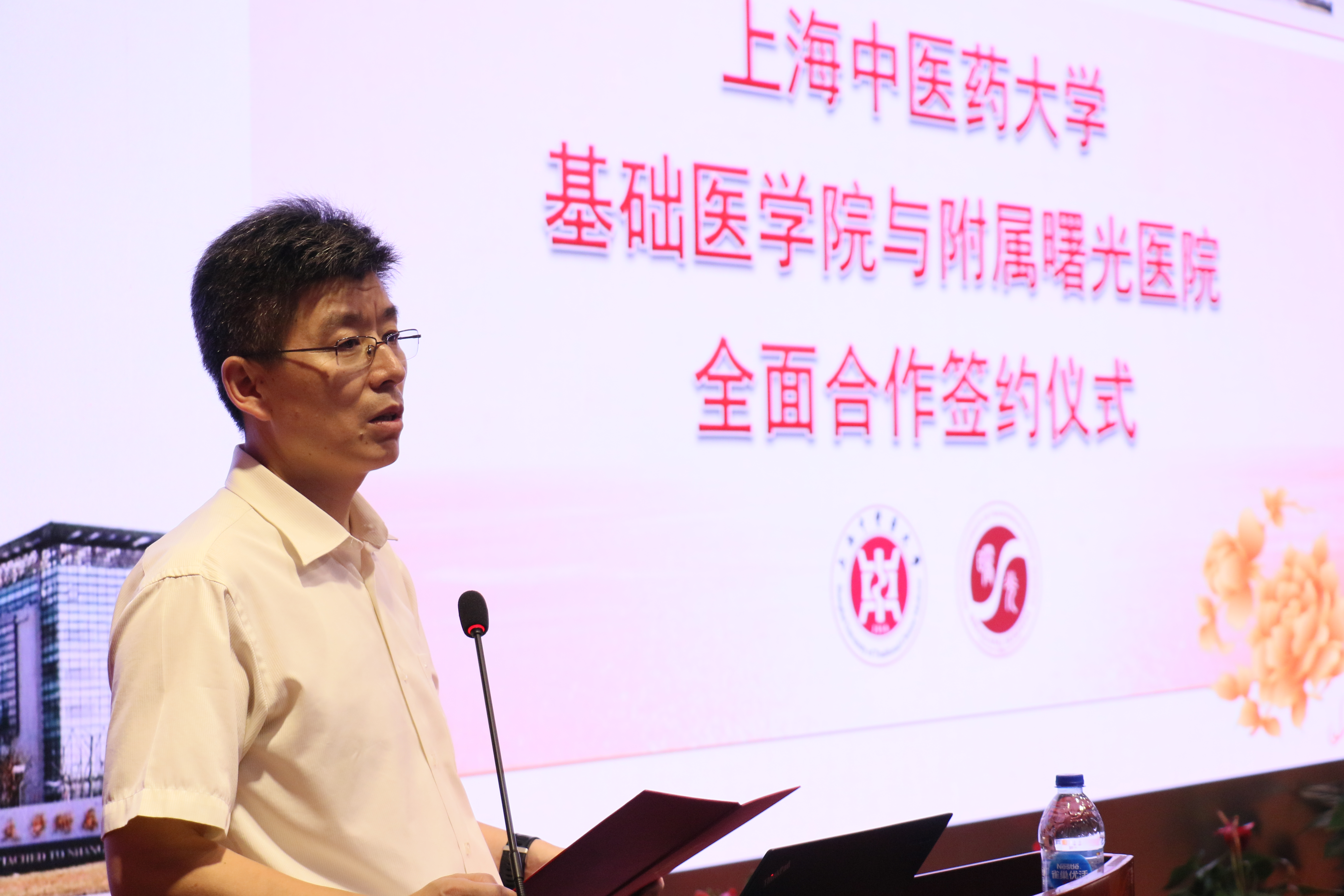 会上,曙光医院院长周华介绍双方合作背景。长期以来,基础医学院与曙光医院在教学、科研、医疗等多方面进行合作,互助互利,共同进步,并取得一定效果。在前期合作的基础上,双方在人才培养、师资互聘、柔性引进等方面具有进一步深化合作的巨大潜力。这次是第三次签订全面合作协议,期待会碰撞出新的火花,结出更多新的合作硕果。