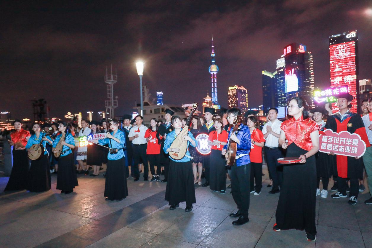 校党委副书记、副校长朱惠蓉,相关职能部门负责人,战“疫”一线医务工作者和各届校友代表一起到外滩与2020届毕业生们共同迎接毕业时刻的到来。