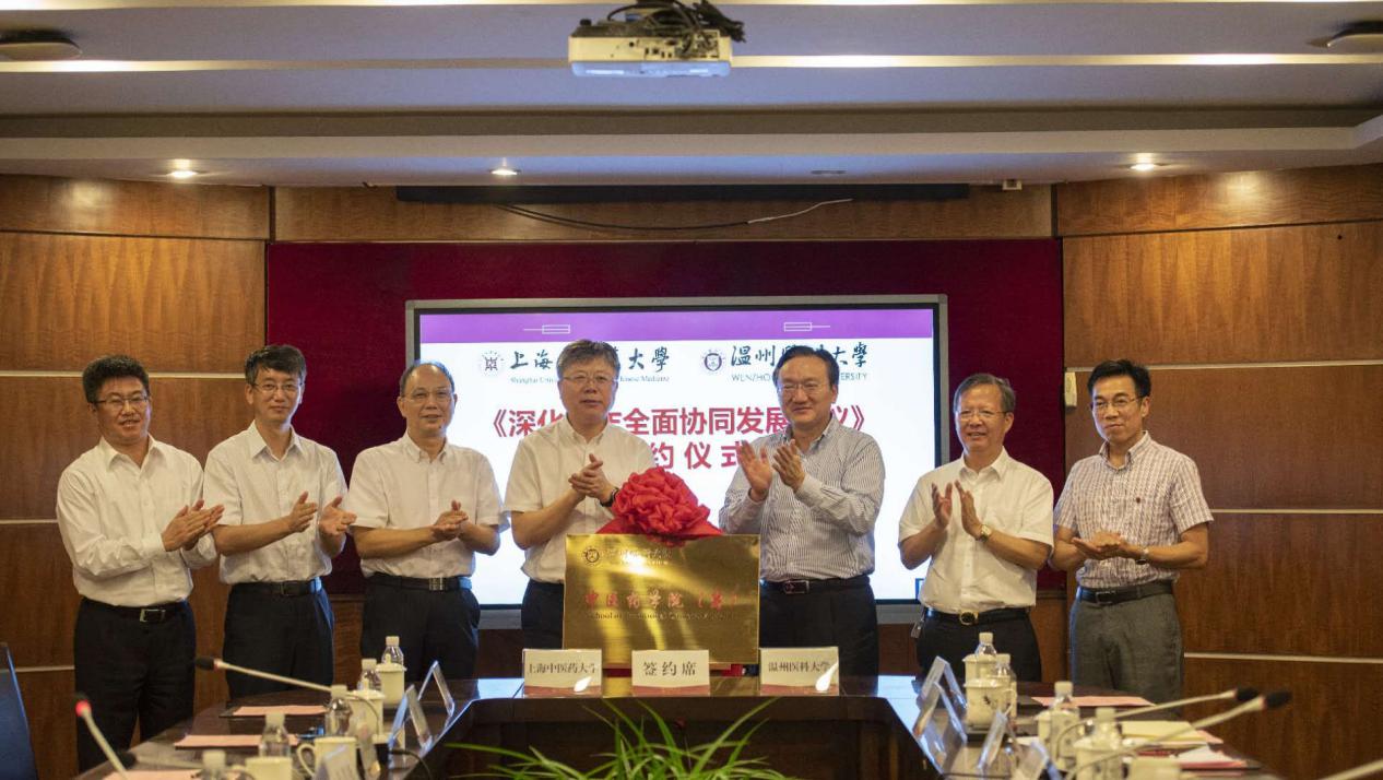 当天下午,在温州医科大学茶山校区,天游ty8线路官网与温州医科大学在前期战略合作框架协议的基础上,签订了《深化合作全面协同发展协议》,并为温州医科大学中医药学院(筹)揭牌。双方将在中医、中药、中西医结合等领域,围绕人才培养模式创新、师资队伍共享互派、重大科技项目联合攻关、科研成果转化等方面,展开更加深层次的合作。温州医科大学校长李校堃,党委副书记吕一军、程锦国,副校长曹建明,以及相关部门负责人等出席会议。