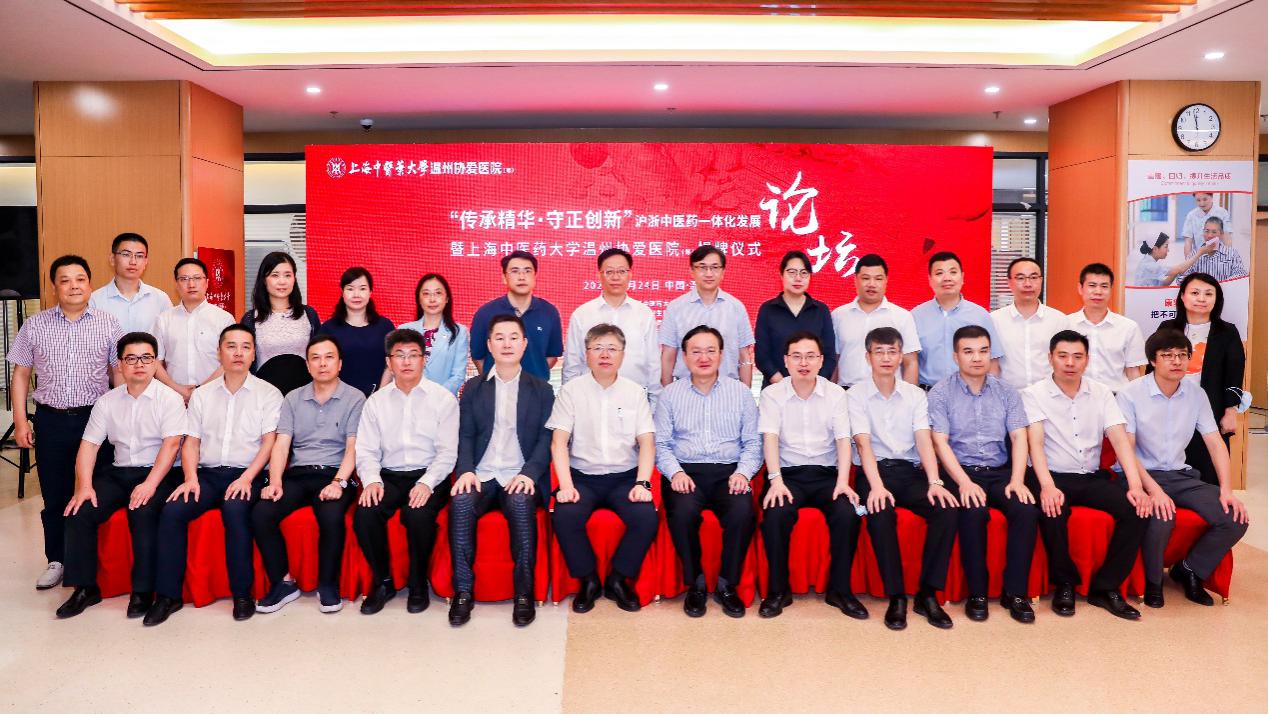 7月24日上午,沪浙中医药一体化发展论坛在龙湾区召开。温州市卫生健康委党委书记、主任陈宏鸣,龙湾区副区长陈军苹,以及龙湾区相关政府部门负责人;协爱医院集团董事长梁智勇、总裁吴志敏等出席会议。会上,天游ty8线路检测中心登录温州协爱医院(筹)正式揭牌,天游ty8线路官网3个名中医传承工作室落地温州,天游ty8线路检测中心登录温州协爱医院与温州市中医院也建立了技术协作关系。