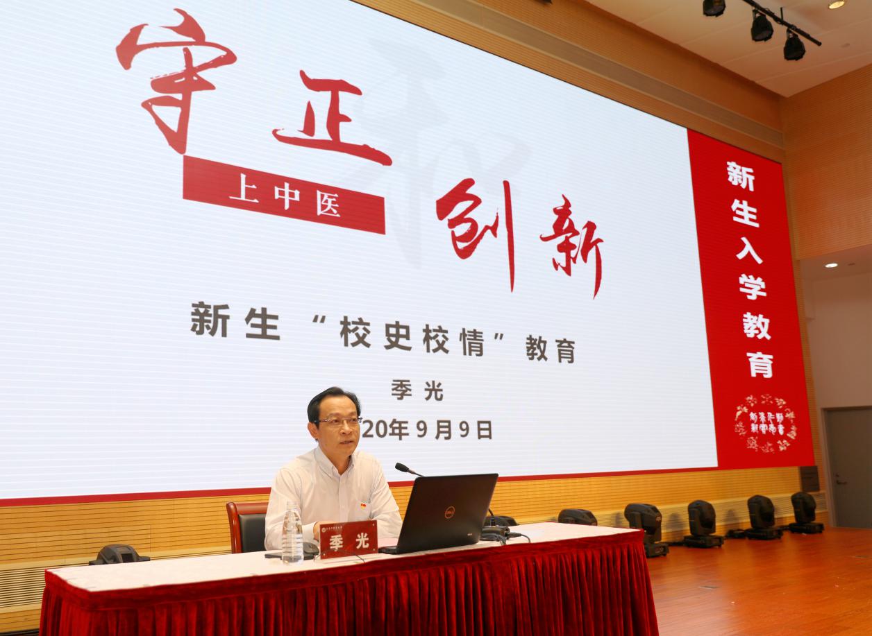 9月9日下午,作为“大学第一课”的重要组成部分,校党委副书记季光以“上中医的守正与创新”为主题,为全体新生讲述了天游ty8线路检测中心登录在党的关怀下不断成长的历程。他以时间为脉络,融入“四史”学习教育,从“上中医的历史”、“上中医的人”和“中医药传承与发展”三个维度跟同学们分享了上中医的故事。