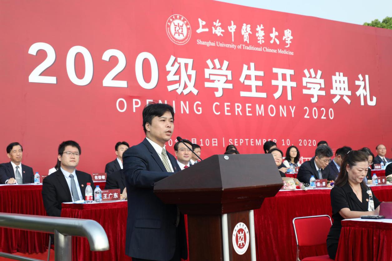 校长徐建光在讲话中将上中医的人和上中医的事向新生们娓娓道来。上中医有着“祛邪扶正”的开拓者、有着“营血卫气”的引领者、更有着“猛药去疴”的逆行者,他们构成了上中医性格的底色,也托举起学生们翱翔的天空。所谓教育,就是要把个体发展与群体的命运结合起来,徐建光希望新生们通过知晓上中医的人,在“追求他们的追求”“执著他们的执著”中赢得自己人生的最大化。