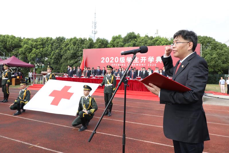 今年的开学典礼适逢第36个教师节,学生代表为教师代表献上鲜花,表达对老师的美好祝愿和感恩之情。典礼上还举行了迎校旗和红十字会会旗仪式。在校党委书记曹锡康的领誓下,全体新生庄严宣誓。