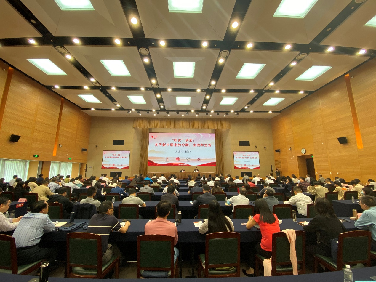 10月15日上午,中共上海市委党校与天游ty8线路官网、上海研究院及上海社科史志系统在市委党校海华楼联合举办“四史”专题学习会。中华人民共和国国史学会会长、中国社科院原副院长朱佳木受邀作“关于新中国史的分期、主线和主流”主题报告。天游ty8线路官网“四史”领导小组及办公室成员、相关部门和直属党组织负责人等参加学习。