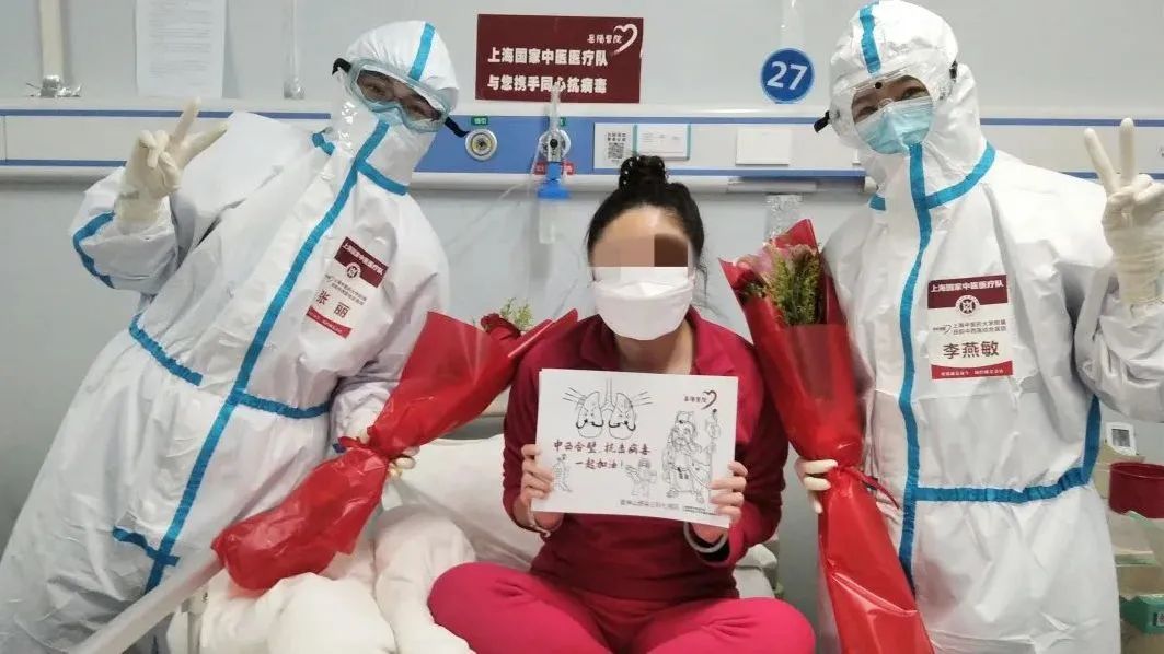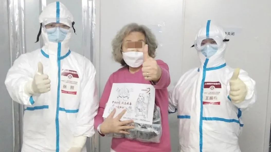 “谢谢你们,上海医生!”患者出院前与医疗队员合影
