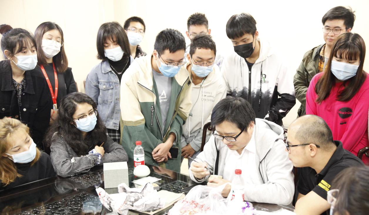 仪式最后,嘉宾们为开幕式剪彩。师生们参观了展览,并现场进行了篆刻艺术与中医特色体验。