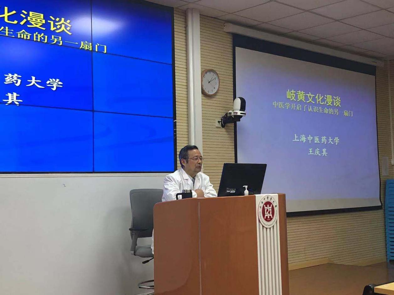 王庆其从“文化”视角推引出中医药文化的内涵,中医学对生命、健康、疾病及生死等价值观念、认知思维方式,以及人文精神和医德伦理等内容。随后,将专业理论与临床经验相结合,从“善言天者必质之于人,善言人者亦本之于天”——中医学的天人观、“形者神之体,神者形之用”——中医学的生命观、“健康是一种和谐的状态”——中医学的健康观、“气化”——生命活动的基本形式和“人者天地之镇”——中医学的人本思想五个方面进行阐述。他指出,中医药文化是根植于中华传统文化,积淀、融合、蕴含、体现着中华传统文化的哲学思想、思维方式和价值观念,中医药文化用传统中华哲学智慧和丰富的实践经验为世界打开了认识生命的另一扇门。王庆其的讲述浅入深出,例证丰富,引起了学员们对中医药学习的普遍共鸣,现场发言踊跃,互动积极,提高了学员们对中医药的认知,进而提振中华文化自信。(教务处教师发展中心、基础医学院)