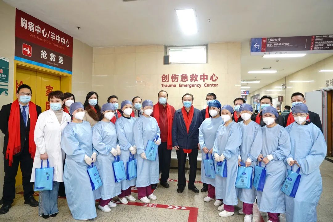 在各医院的门急诊、儿科、发热预检、核酸采样点、检验科等处,校领导们深入了解医院春节期间新冠疫情防控、患者救治及后勤保障等工作情况,与奋战在一线的医务人员、工勤人员一一握手,对他们在工作岗位上的敬业与坚守表示崇高的敬意和衷心的感谢,并致以新春祝福。