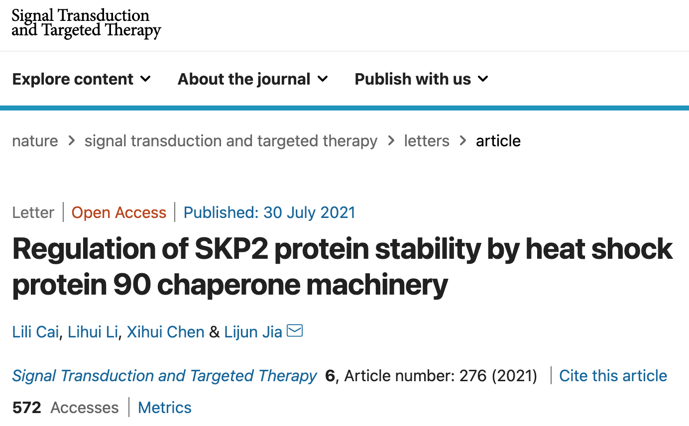 天游ty8线路官网附属龙华医院贾立军团队发现HSP90分子伴侣系统抑制剂促进SKP2泛素连接酶降解