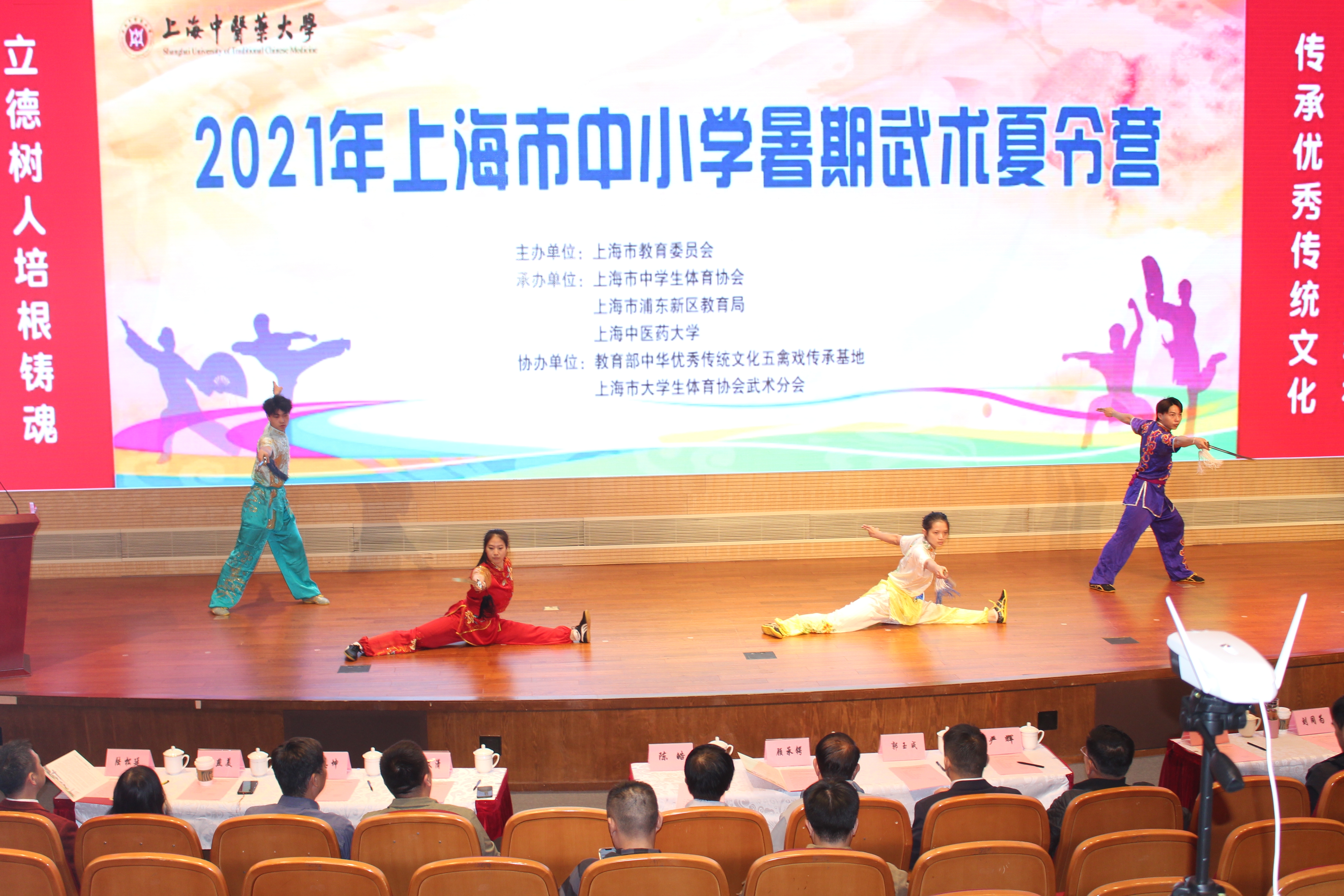 10月30日,2021年上海市中小学暑期武术夏令营结营仪式在天游ty8线路官网举行。本届夏令营以“弘扬武术精神、传承民族文化、全面提高上海市青少年武术技能水平”为宗旨,以“武医融合,徳技兼修”为教育理念,由上海市教育委员会主办,上海市中学生体育协会、上海市浦东新区教育局、天游ty8线路检测中心登录联合承办。