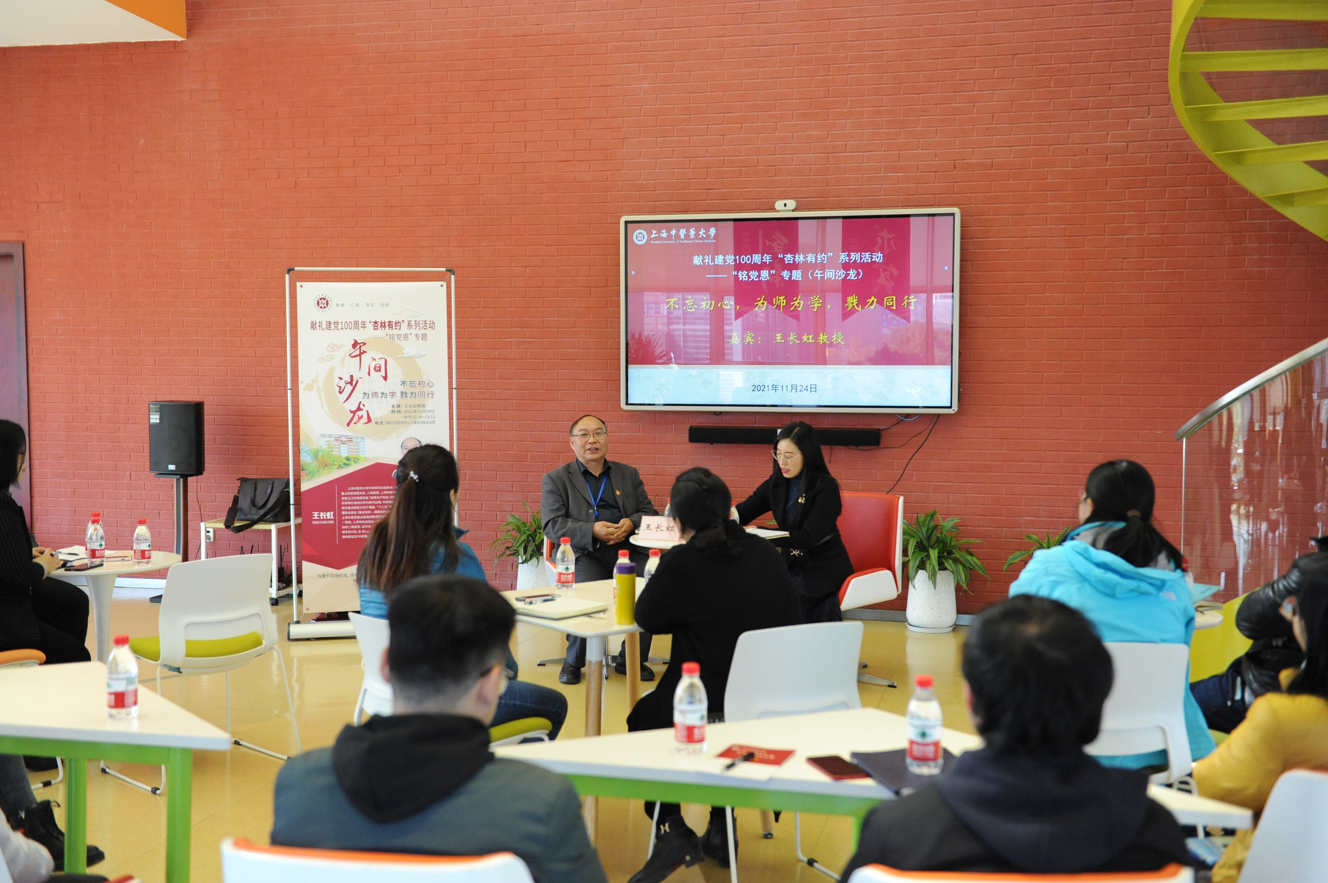 11月24日中午,天游ty8线路官网献礼建党100周年“杏林有约”系列活动之“铭党恩”专题午间沙龙在国际交流合作中心三楼多功能厅举行。天游ty8线路官网中药研究所副所长王长虹教授受邀和青年教师们分享“为人为师为学”的体会和感悟。活动由校党委教师工作部副部长刘虹主持。