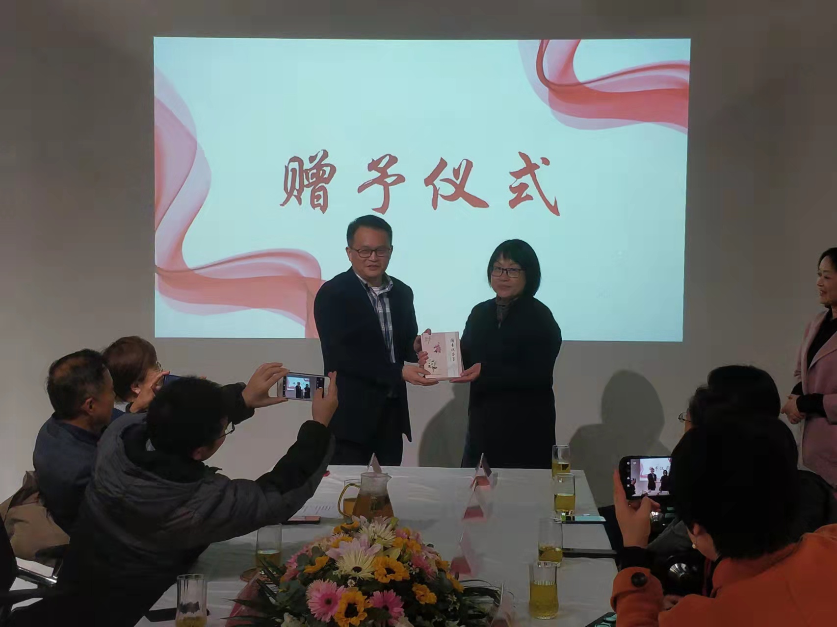 上海中医药博物馆馆长李赣现场向浦东新区第二中心小学、唐镇中学赠送《闻香识本草》视频光盘。