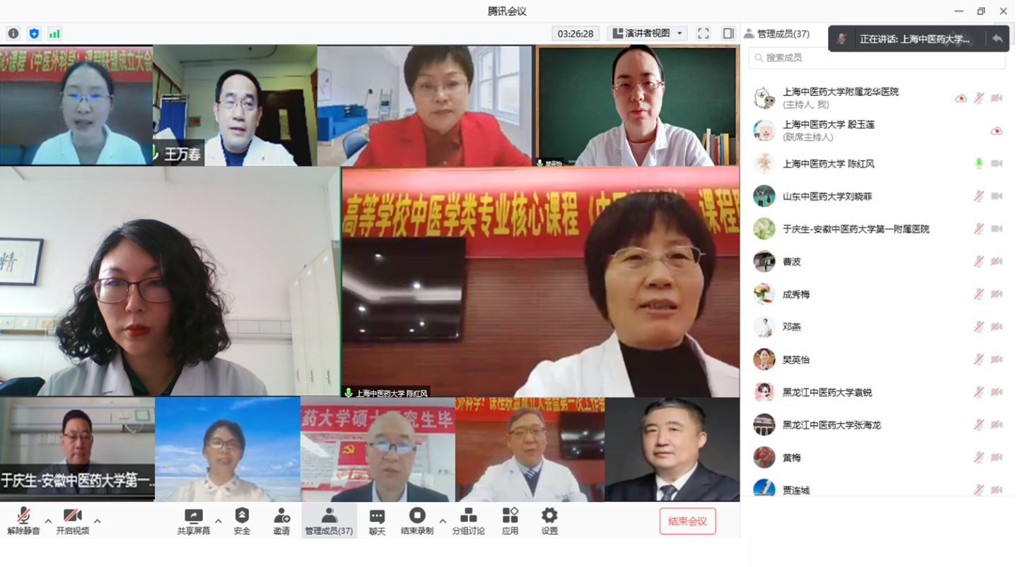 开幕式后,来平凡就课程的“两性一度”实现路径作专题报告,结合教育部关于一流本科课程建设的实施意见,提炼出需要从提高课程目标和内容的高阶性、突出教学内容和方法的创新性,增加教学设计考核考试评价的挑战度三个方面进行课程建设的原则。江西中医药大学王万春教授建议引导学生自由组建学习小组,提高学生学习兴趣及自由探索的精神,进一步打造《中医外科学》优质课程。北京中医药大学樊英怡教授介绍了该校裴晓华教授团队基于Jigsaw教学模式在留学生《中医外科学》授课的教学改革成果。陈红风则从国家一流本科课程的建设与实践出发,介绍了天游ty8线路检测中心登录《中医外科学》课程建设中采用多形式、多维度、多阶段模式深化中医教学内涵,优化知识及技能的教考方式,打造金课的经验。