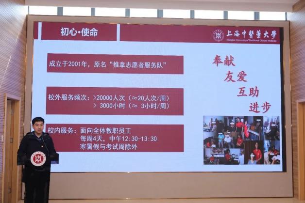针灸推拿学院党总支副书记马杰介绍2021年天游ty8线路检测中心登录青年志愿服务优秀项目“针灸推拿学院志愿者服务队科普组”,项目组成员立足专业,面向校内外各界人士,展现中医青年的责任担当。获“求实杯”社会实践大赛一等奖的护理学院团委“穿越百年的药箱:解锁信仰密码,讲好初心故事”项目团队的成员分享“穿越百年药箱”的故事。
