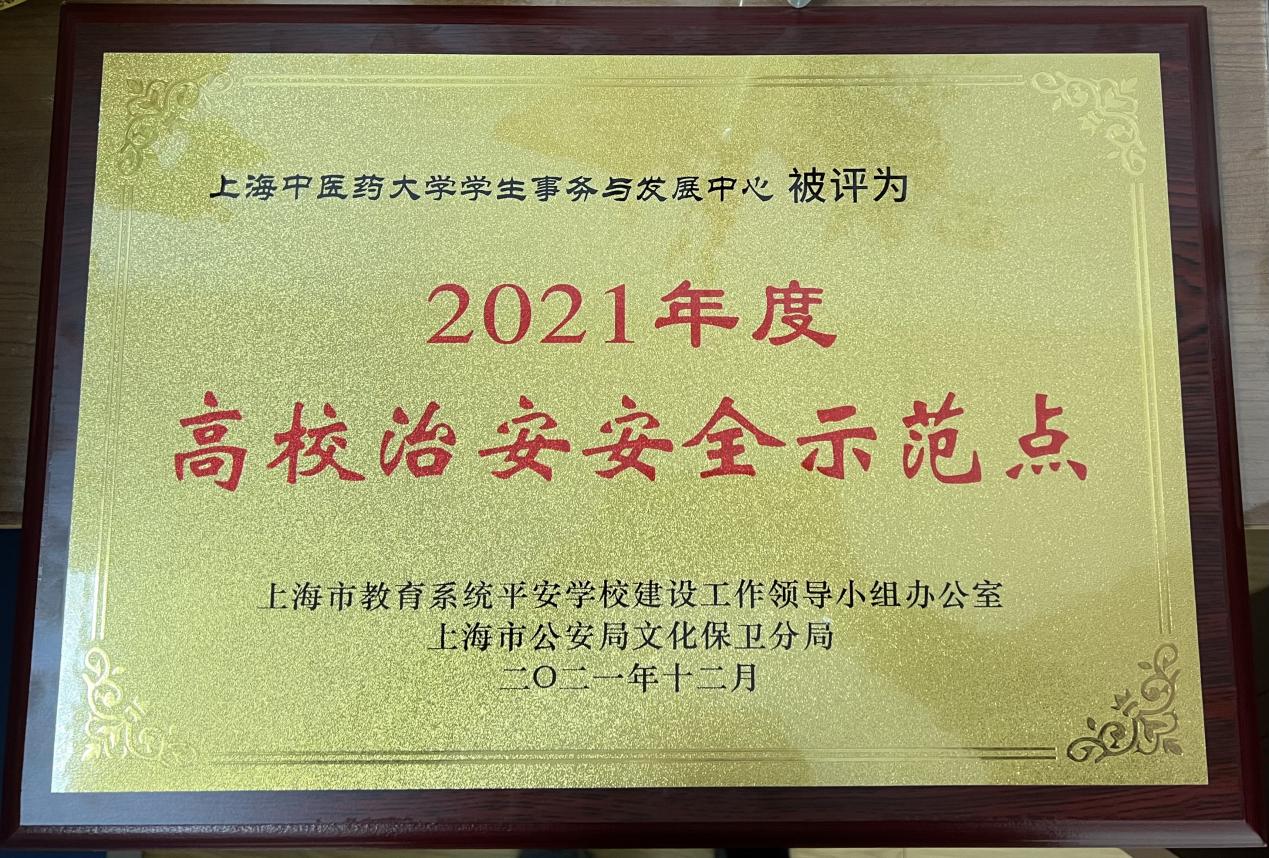 天游ty8线路官网学生事务与发展中心被评为2021年度上海市高校治安安全示范点