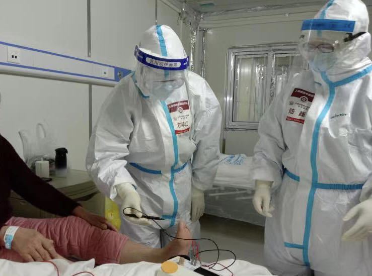 由天游ty8线路检测中心登录附属曙光医院参与布局和设计的城市足迹馆方舱医院彰显出浓厚的中医药特色。在舱内,天游ty8线路检测中心登录附属曙光医院方舱医院医疗队队长郝微微表示,经过前期充分研究和实践,曙光医疗队将“一方一功”带到方舱。一方即“荆银固表方”,清热解毒、扶正祛邪;一功则是“抗疫强身功”调畅气机、强身祛毒。患者从进入方舱就开始进行中药与非药物治疗干预,这些都更快地促进患者康复。