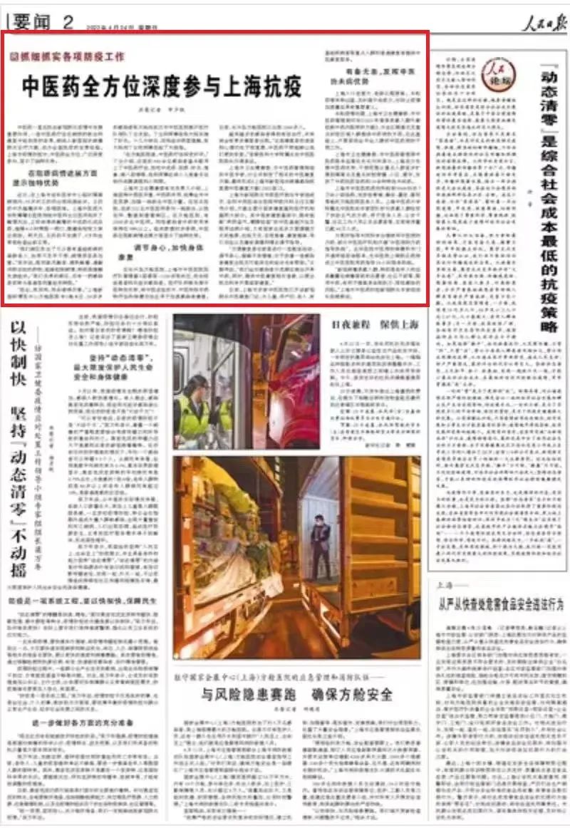 中国中医:人民日报发文:中医药全方位深度参与上海抗疫