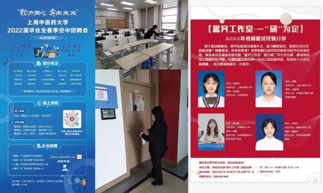 解毕业之忧,加大对特殊困难学生的关心关爱力度,针对考研复试学生关于复试场地和网络保障的“急难愁盼”问题,充分挖掘空间资源,设置“考研复试专用室”,打通毕业、就业工作最后一公里。中药学院研究生党支部作为全国百个研究生样板党支部,扎根学生生活园区的“思齐工作室”,在特别的毕业季开展学习答疑、生涯分享活动。