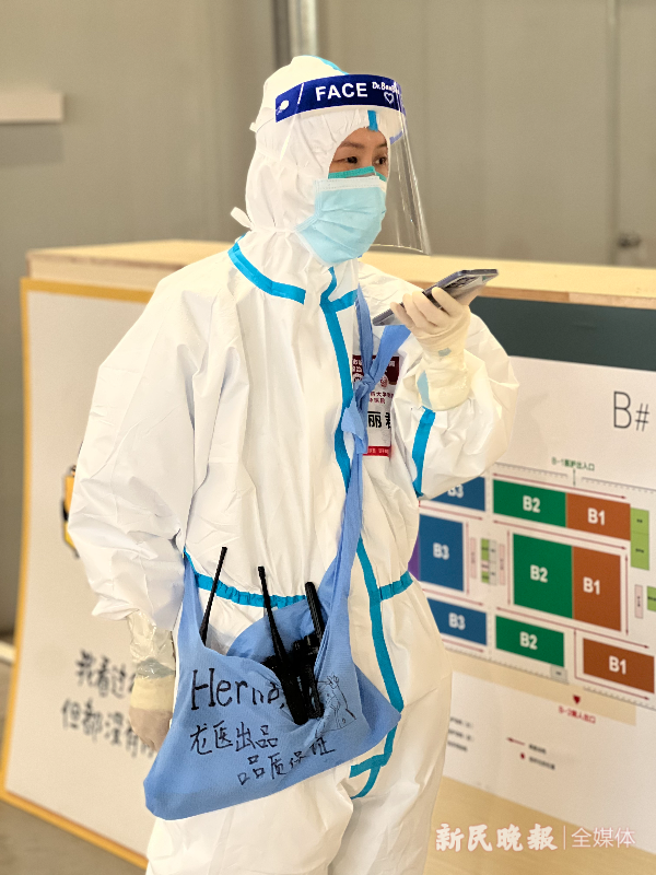 一手拿着对讲机、斜挎自制的小包,在龙华医院医疗队接管的两个舱里,总能看见席丽君在四处奔忙——收治病人、发放餐食、“一老一小”的关照、特殊患者的照料……尽管方舱医院收治的多为轻症或无症状感染者,但该做到的护理细节一点儿也少不了。“援鄂归来后,我对护理工作制度、各班岗位职责、患者收治流程有了自己的思考,并在上海抗疫中得以运用。”她回忆,“记得有一夜,凌晨两点有近300名患者入院,正是有了有序组织和完善的流程,一个小时不到就将大家安置妥当。”