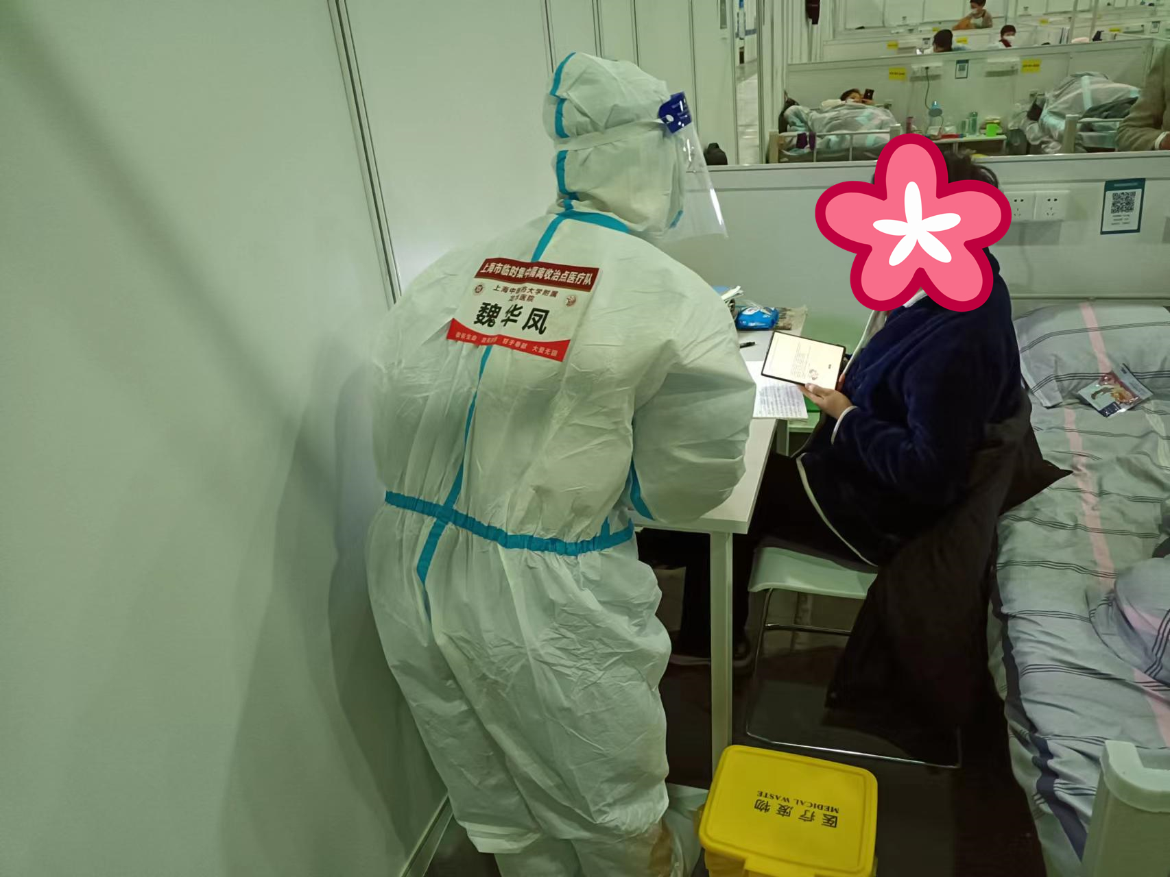 在方舱医院,魏华凤还有一个重要身份——龙华医院医疗队临时党总支组织委员。她召集党员们掀起“头脑风暴”,群策群力下,小型音乐会、集体生日会等一系列活动的举办,让感染者们真切感受到来自“大白”的爱。