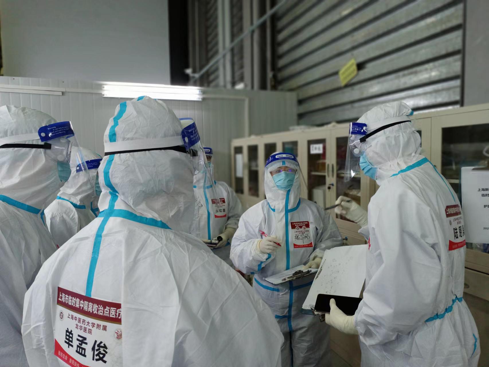 在金山区天华路方舱医院,龙华医院医疗队所负责的病区中医治疗率达100%,累计收治逾3000名阳性感染者。