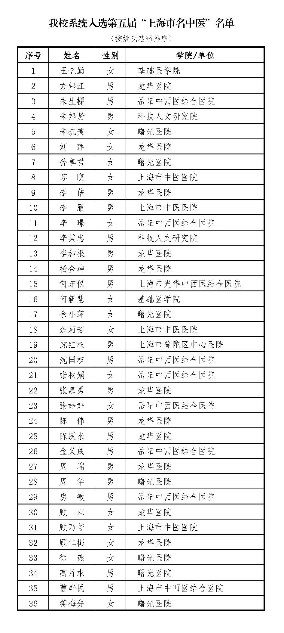 根据上海市卫生健康委员会、上海市人力资源和社会保障局及上海市中医药管理局联合印发《关于公布第五届上海市名中医评选结果的通知》,确定49人为本届上海市名中医入选人员,天游ty8线路官网系统王忆勤等36位专家入选,其中29人由大学推荐入选。