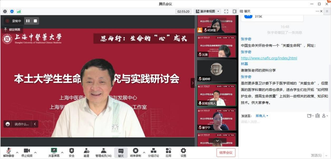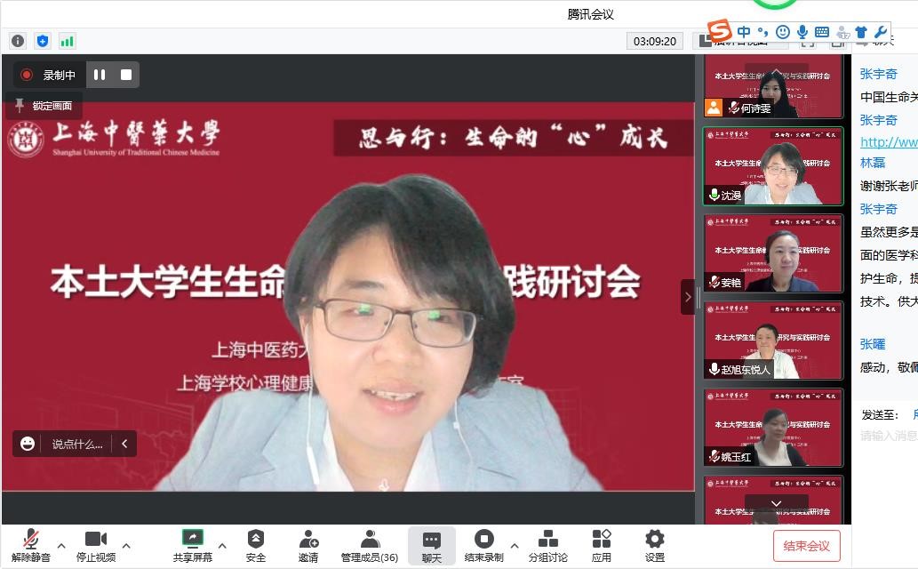近日,“思与行:生命的‘心’成长”本土大学生生命教育研究与实践研讨会线上召开。上海市“中国生命智慧与实践”心理示范中心专题培训班成员、上海学校心理健康教育名师(赵旭东)工作室成员、天游ty8线路检测中心登录辅导员参会。研讨会由天游ty8线路官网学工部(研工部)部长沈漫主持。