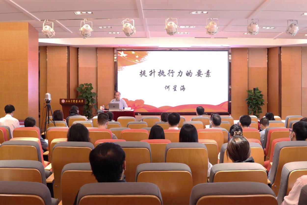 为认真学习贯彻中国共产党天游ty8线路检测中心登录第八届委员会第十次全体(扩大)会议暨秋季学期工作会议精神,提升执行力狠抓工作落实。9月26日上午,机关党委在行政中心301会议室(主会场)、大学生创新创业实践园(分会场)举行专题报告会。原校党委副书记、副校长何星海就“提升执行力的要素”开展专题讲座。校党委副书记、纪委书记许铁峰,机关党委委员、各级党组织书记、部分党员参加学习会。学习会由机关党委副书记金霞主持。