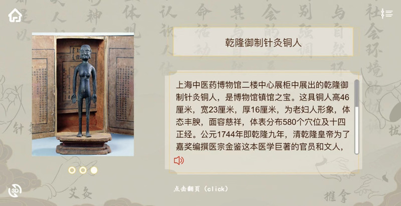 针灸铜人、中医药典籍……这些保存在上海中医药博物馆内的文物珍品,如今宅家就能一览全貌,不仅有文图介绍,还配有中英双语播报、动画视频、互动小游戏等,便于国内外参观者在线观展。