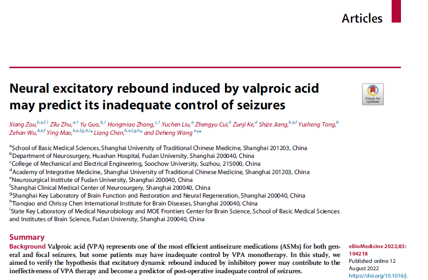 天游ty8线路官网基础医学院王德恒在The Lancet子刊eBioMedicine发文揭示丙戊酸钠抑制癫痫发作的神经机制
