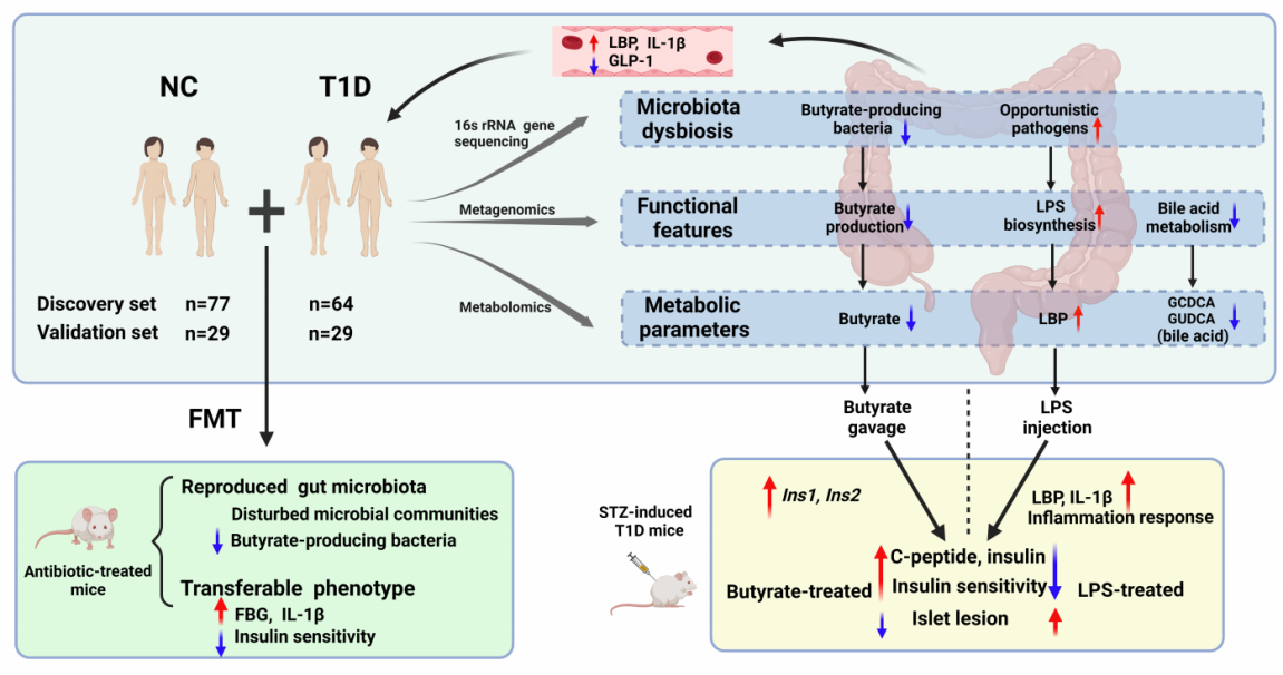 季光/罗飞宏团队在Nature Communications发表论文揭示1型糖尿病发病与肠道菌群结构和功能紊乱有关