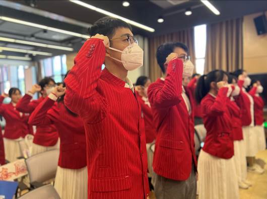 来自针灸推拿学院2022级针灸推拿专业的余天星作为领誓人,号召全体师生共同承诺,宣誓全心全意服务进博:“以真诚的热情服务各国来宾,以自信和智慧展现岐黄风采,以最饱满的精神,投入进博服务工作。”服务保障第五届进博会的冲锋号角已经吹响,为进博,一起加油!