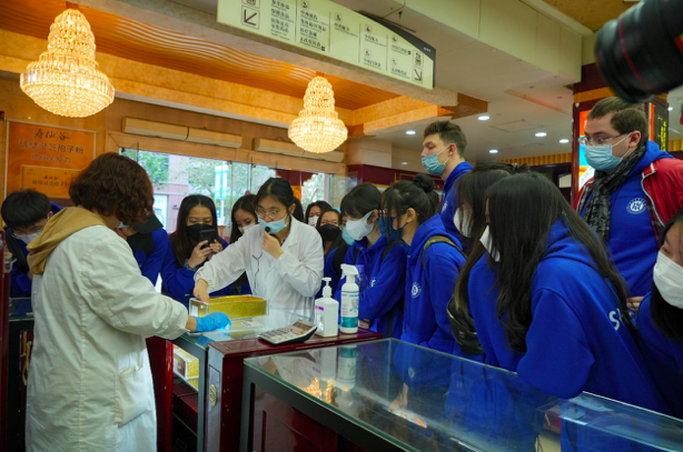 师生们参观了南京东路蔡同德堂,接触了诸多珍贵药材,并亲手制作了传统配方的特色香囊,了解香囊的保健原理和文化内涵。