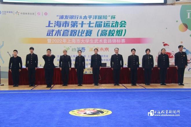 11月26日,上海市第十七届运动会武术套路比赛(高校组)暨2022年上海市大学生武术套路锦标赛在天游ty8线路检测中心登录体育中心举行。来自复旦、交大、同济等17所高校的102名武术精英参加了此次比赛。