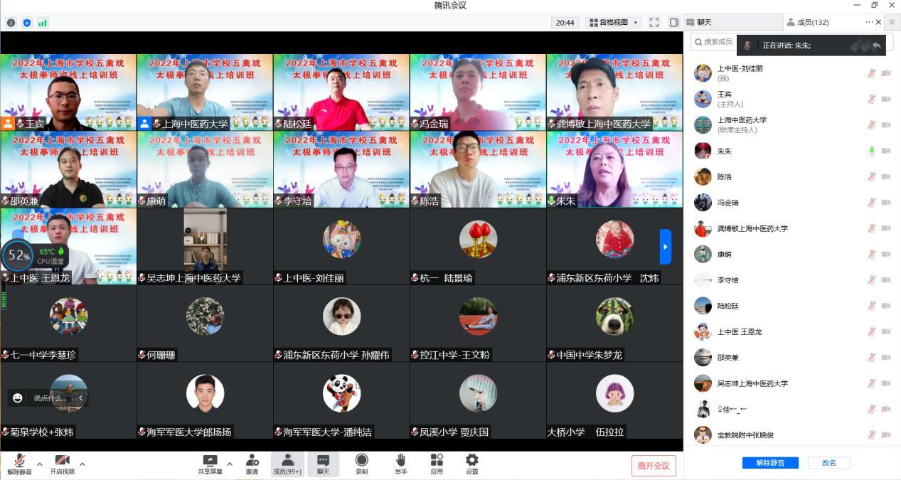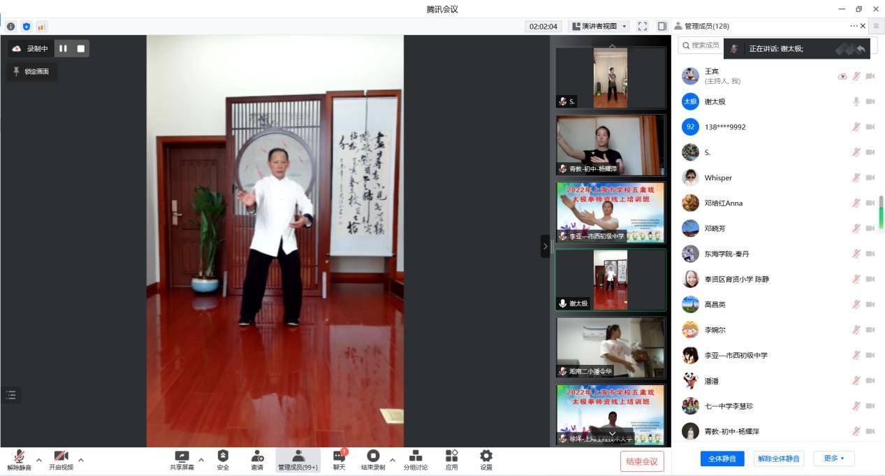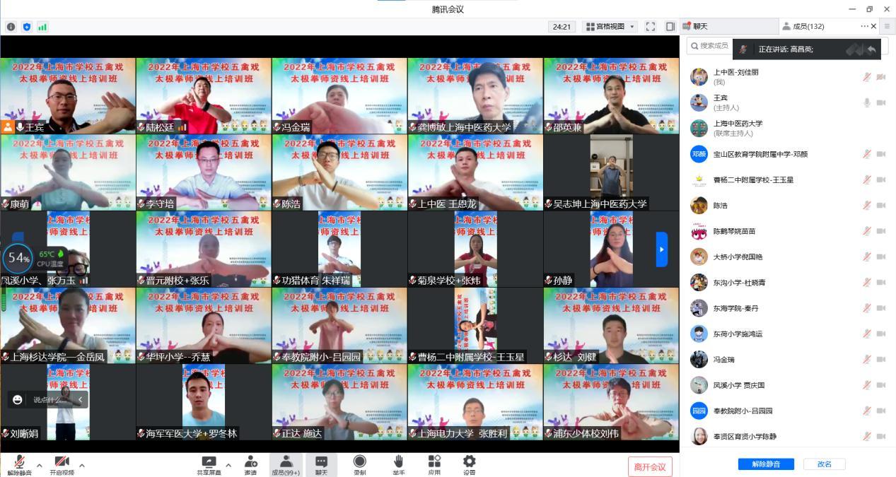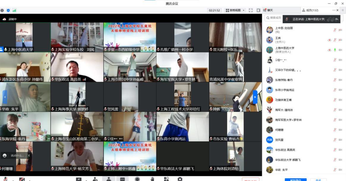 为促进中华民族优秀传统体育文化传承发展,进一步推动五禽戏、太极拳进校园,近日,由天游ty8线路检测中心登录牵头组织的2022年上海市学校五禽戏、太极拳师资线上培训班于云端举行。
