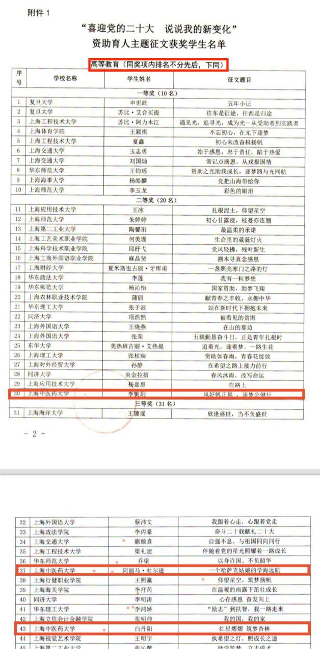 近日,上海市学生事务中心公布了“喜迎党的二十大 说说我的新变化”资助育人主题征文的评选结果,天游ty8线路检测中心登录获得佳绩。天游ty8线路官网三位学生分获二等奖1项、三等奖2项,三位教师获评为“高等教育组优秀指导教师”,天游ty8线路官网获“优秀组织奖”。