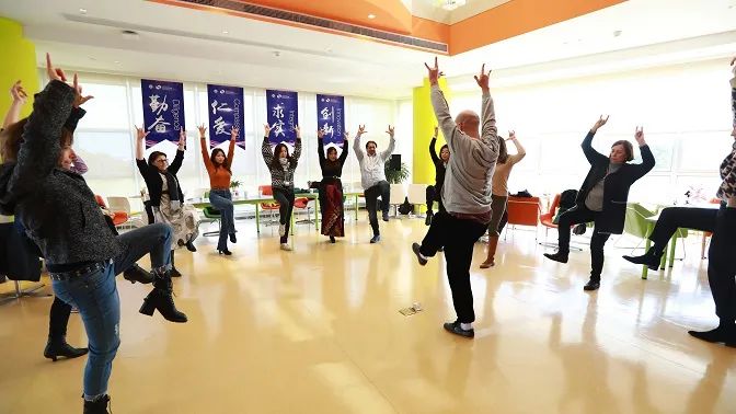 在轻松的氛围中,参与者们充分互动,用简单的汉语相互打招呼并作自我介绍。教室里充满了欢笑声。