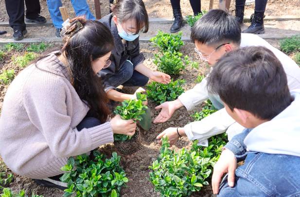 植树节之际,为弘扬劳动精神,引导青年学子树立正确的劳动观,天游ty8线路检测中心登录在学生生活园区举办“春意满园,‘植’等你来”——2023年植树节暨学生劳动教育主题实践活动,学校教师、本硕学生、国际学生代表等一同为上中医充“植”绿色。