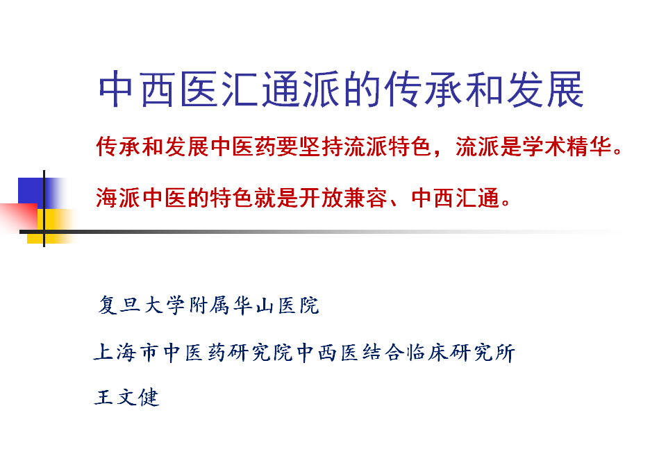 上海市中西医结合学会名誉会长、全国名老中医药专家学术经验传承指导老师、上海市名中医王文健教授作题为“中西医汇通派的传承和发展”的主旨报告。他在报告中指出,传承和发展是中医药要坚持流派特色,流派是学术精华;海派中医的特色就是开放兼容、中西汇通。王文健全面介绍中西医汇通派先驱恽铁樵先生对中西汇通理论的贡献,系统回顾以陆渊雷、姜春华、沈自尹、王文健为代表的多位中西医汇通学派医学大家的治学风格,以及中西汇通学派对中西医结合重大科学问题的贡献和主要学术成就,深刻阐述了截断扭转理论、肾本质研究、同病类证学说的科学内涵;并对精准医学时代的中西医结合、中西医结合老年病防治观念指明了方向。