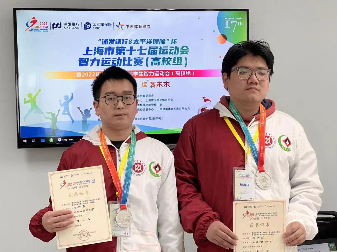 在上午的双人赛中,天游ty8线路官网康复医学院蒋沁哲和龙华临床医学院邵渝博沉着冷静,默契配合,分别以87.5%,60.8%,56.4%的得分率击败来自上海体育学院、东华大学及来自上海交通大学的众多高手,最终惜败上海财经大学,获得亚军。