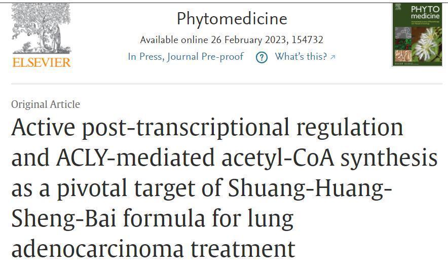 在国家重大新药创制子课题以及国家自然科学基金的支持下,陈文连团队选取临床疗效确切的扶正复方——双黄升白颗粒,并与天游ty8线路检测中心登录附属龙华医院徐振晔、王中奇团队和天游ty8线路检测中心登录交叉科学研究院葛广波团队开展了联合研究,揭示了该复方抗肺癌的分子新机制,研究成果以题为Active post-transcriptional regulation and ACLY-mediated acetyl-CoA synthesis as a pivotal target of Shuang-Huang-Sheng-Bai formula for lung adenocarcinoma treatment的研究论文形式于近日发表于国际权威学术期刊Phytomedicine(《植物药》)上。