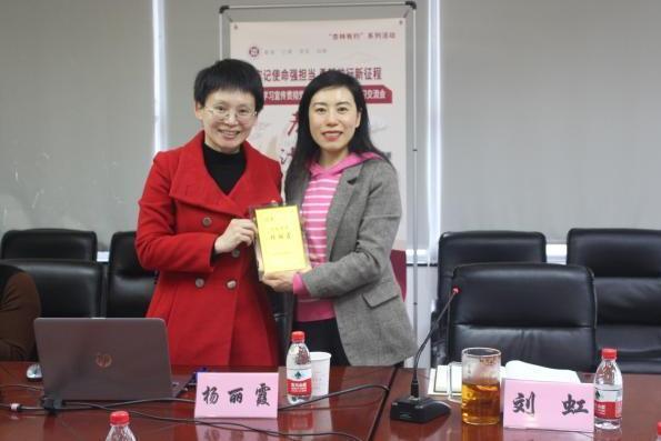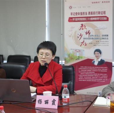 3月23日下午,“牢记使命强担当 勇毅前行新征程——深入学习宣传贯彻党的二十大精神”专题第四期教师学习交流会暨第36期“杏林有约”教师午间沙龙在行政中心312会议室举办。天游ty8线路官网“杏马”理论宣讲团成员、马克思主义学院副教授杨丽霞以“坚持人民至上,深刻把握新时代党的理论创新的立场和方法”为题作专题辅导报告。宣传部(党委教师工作部)副部长刘虹主持会议,并向杨丽霞颁发“阳光导师”荣誉证书。青年教师班主任、教师党支部党员代表等40余人参加学习交流。