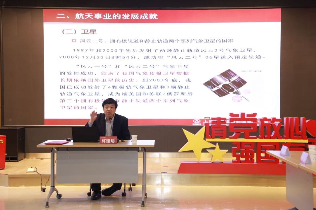 课上,许建明用丰富的史实、详实的数据和生动科学家故事,诠释了“特别能吃苦、特别能战斗、特别能攻关、特别能奉献”的载人航天精神,再现我国航天事业从无到有、从小到大、从弱到强的发展历程,以及我国正从航天大国向航天强国迈进的历史征程和所取得的历史性成就。学生们就未来航天事业发展方向、航天事业发展对普通人生活影响等问题,与许建明展开热烈讨论。之后,学生们还走进上海航天设备制造总厂有限公司,在运载火箭总装车间内目睹一枚运载火箭的组装过程。2021级中西医临床医学专业的陈天佑表示,中医四诊仪已经加入航天试验计划,通过望闻问切的手段来守护航天员的健康,自己立志研发更多的中医仪器和中西医结合技术进行健康监测和身体调理,帮助航天员更快地实现太空和地球的切换,更快地恢复身体的各项机能;2021级食品卫生与营养学专业的芦心怡则对如何为航天员们研发出更多美味而富有营养的太空食品进行深入思考。