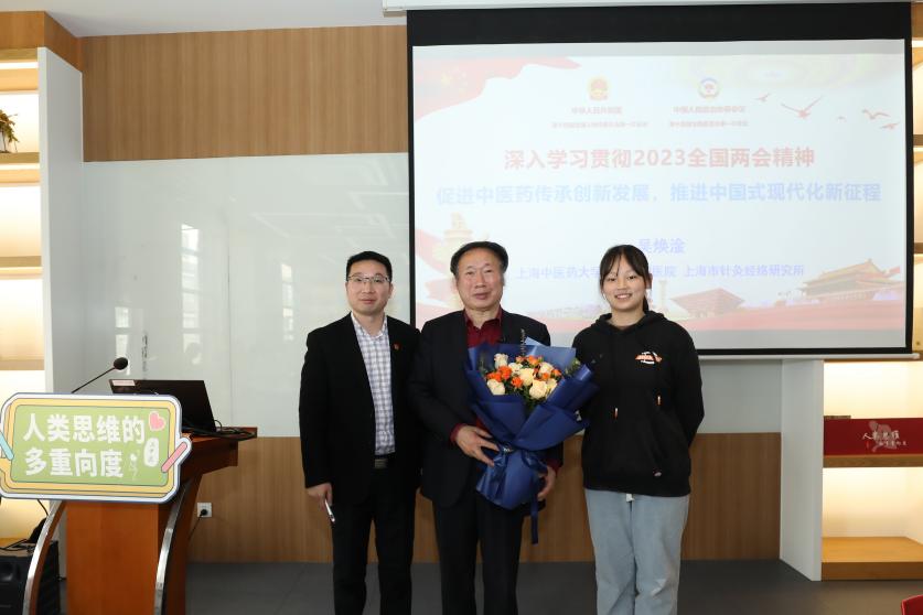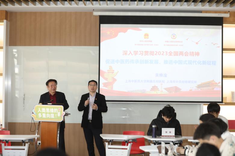 3月28日上午,全国人大代表、天游ty8线路官网首席教授、上海市针灸经络研究所所长吴焕淦走进《人类思维的多重向度》课程课堂,以“时代之思:两会精神与中医药发展蓝图”为题,进行深入浅出的授课,给学生们带来一场精神盛宴。